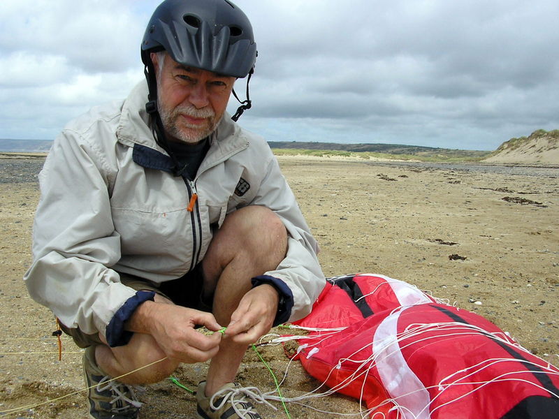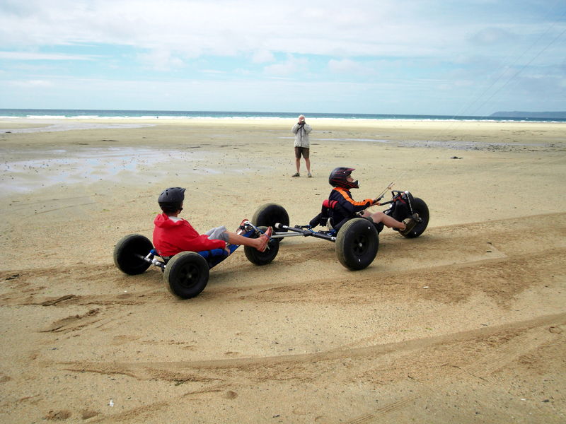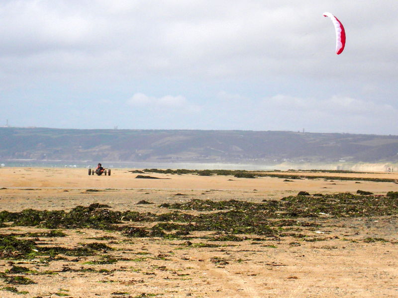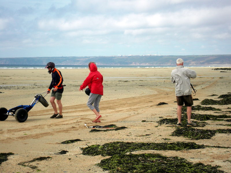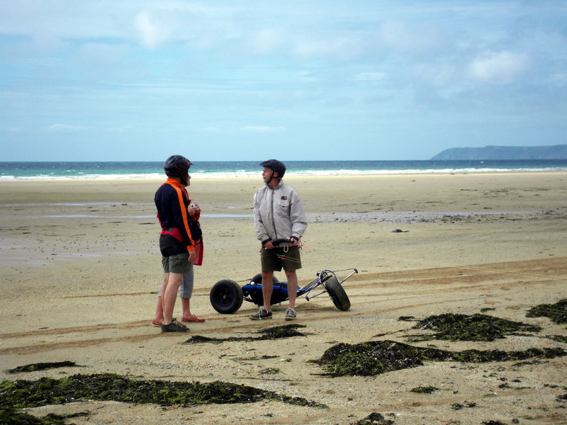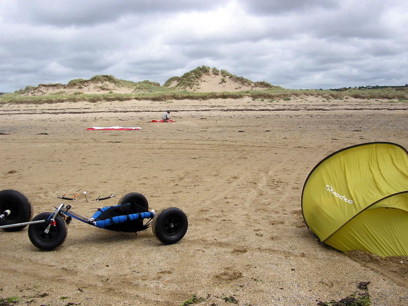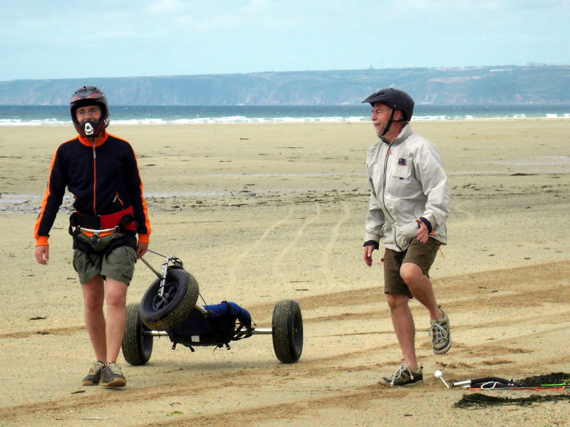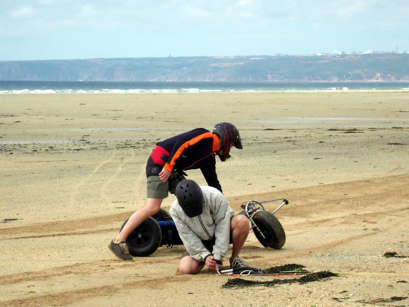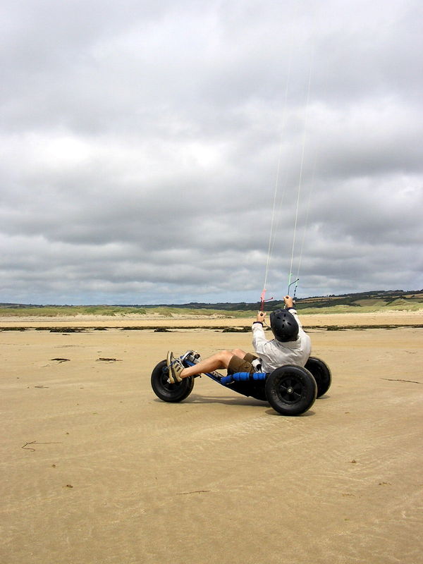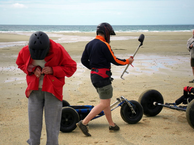 Pour papi, ça commence par un petit cours théorique, puis avec une prise en main d’un cerf-volant 4 lignes, ça continue par un tour de tandem et c’est parti, premier tour de roue en char … nickel !