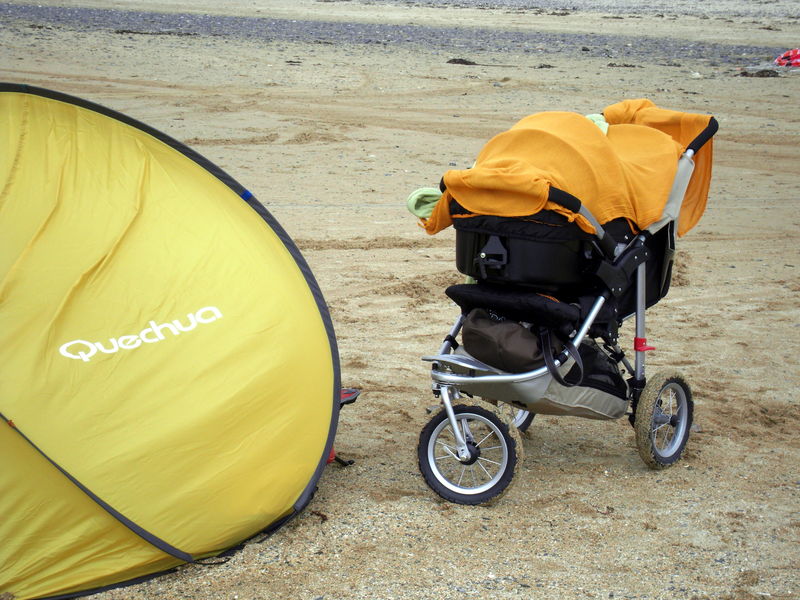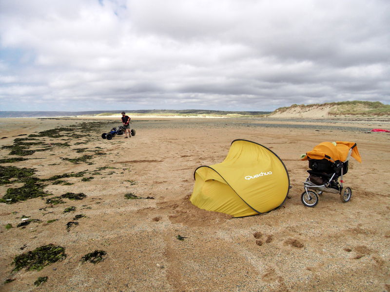 Ben pour l’abri, sur la plage on a remballé en vitesse … et le sac ne fermé pas tiptop ! Mais arrivé à la maison pas de problème 😉