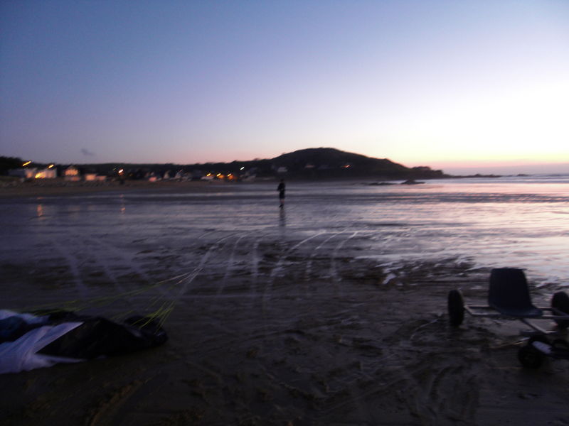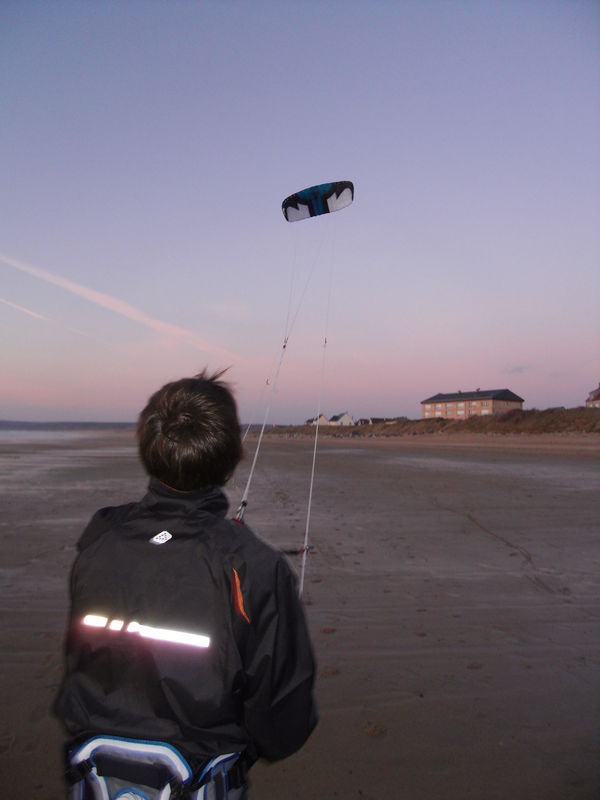 Premier essai sur un terrain de foot … a peine quelques noeud de vent, il faut courire pour faire décoller l’aile 🙁 Deuxième essai : ça vole tranquillement mais ça ne tire pas dur. Ca permet de se rendre compte que l’aile est bien stable, elle monte bien au zenith, pas de fermeture d’oreil ou autres désagréments dans le petite vent … ça donne envie d’en voire plus !