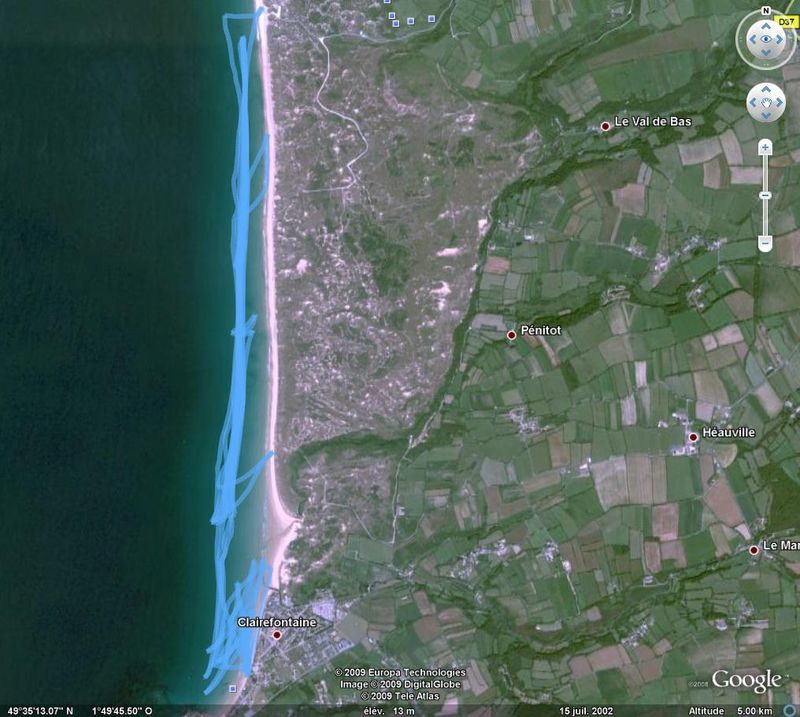 Dimanche, vent un peu plus fort en fin de matinée, pour rouler en 6 puis retour à la 8,6, le vent chutant. Domage que le ciel soit couvert et j’ai oublié le GPS… Pas mal d’aller retour entre Siouville et le premier bunker de Vauville. J’ai pu tester ce que valait la combi respirante en arrivant dans les bâches pleine balle! pas mouillé et presque pas transpiration au point que je sentais légèrement le froid de l’extérieur vers la fin. En même temps, j’étais pas couvert dessous.