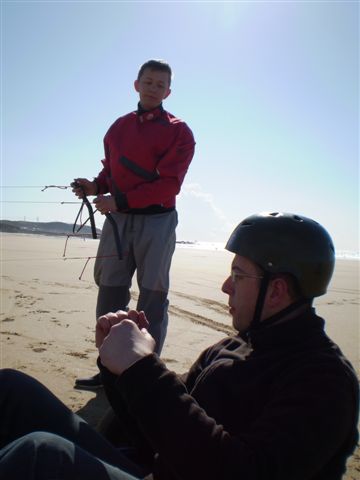 Arrivée vers 15h sur la plage, (désolé kON!c, ma sieste a trainé un peu et j’ai raté l’heure … 🙁 ) je retrouve Jef et Maximin prêt à faire feu ! … euh non, on va plutôt aller sur la plage 😉