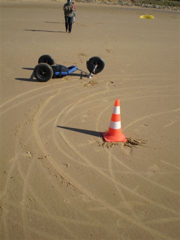 Et un buggy retourné ! Mince alors, ils sont bourrins ces apprentis kitebuggiste.