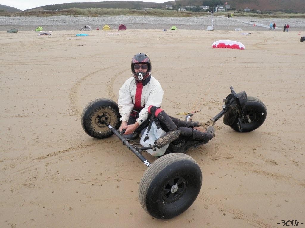 Ça commence pour moi vers 9h, finalisations des préparatifs, et il y en avais un paquet de trucs à emmener ! Le char tout démonter pour rentrer dans la voiture, tout le matos habituel : harnais, poignées, lignes, casque … le matos en rabe pour les copains (qui sont pas venus) la déco du campement qui n’a pas servi pour cause de trop de vent (3 coccinelles, 3 monofils, 1 bannière, 1 drapeau) et toutes mes ailes : 5 Hélium et 9 Z2. J’avais emmené les Hélium si jamais quelqu’un voulais les acheter … mais du coup, voyant plus de 20 nœuds à 12h, avec des prévisions montante … je voulais assurer le coup : je sort avec mon hélium 2.2m² et 11mètres de lignes. Au final, le vent c’est stabilisé à 20 nœuds, j’étais comme il faut pour ne pas avoir de frayeur. Ca roulais tranquillement, pas de dérapage. C’étais très bien pour tenir 4h !