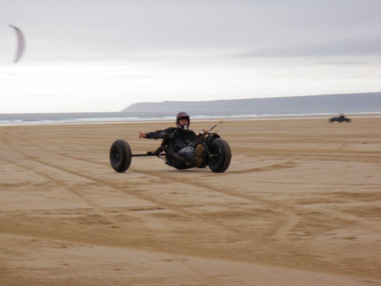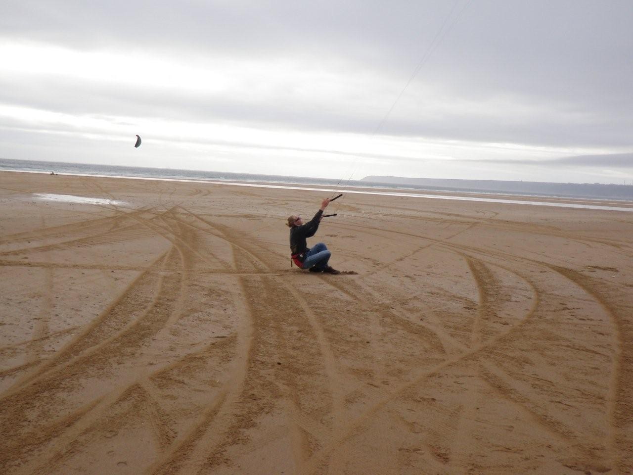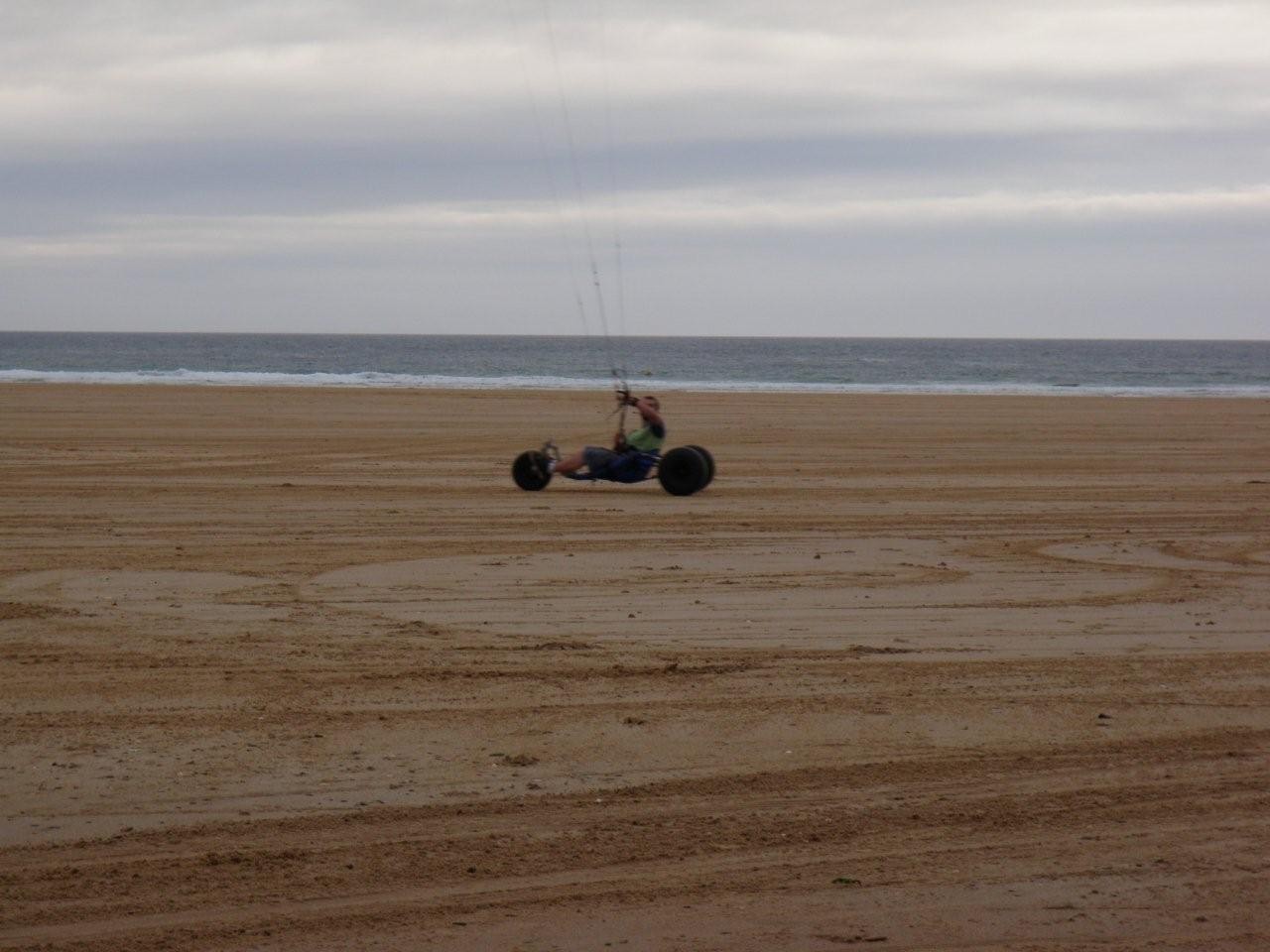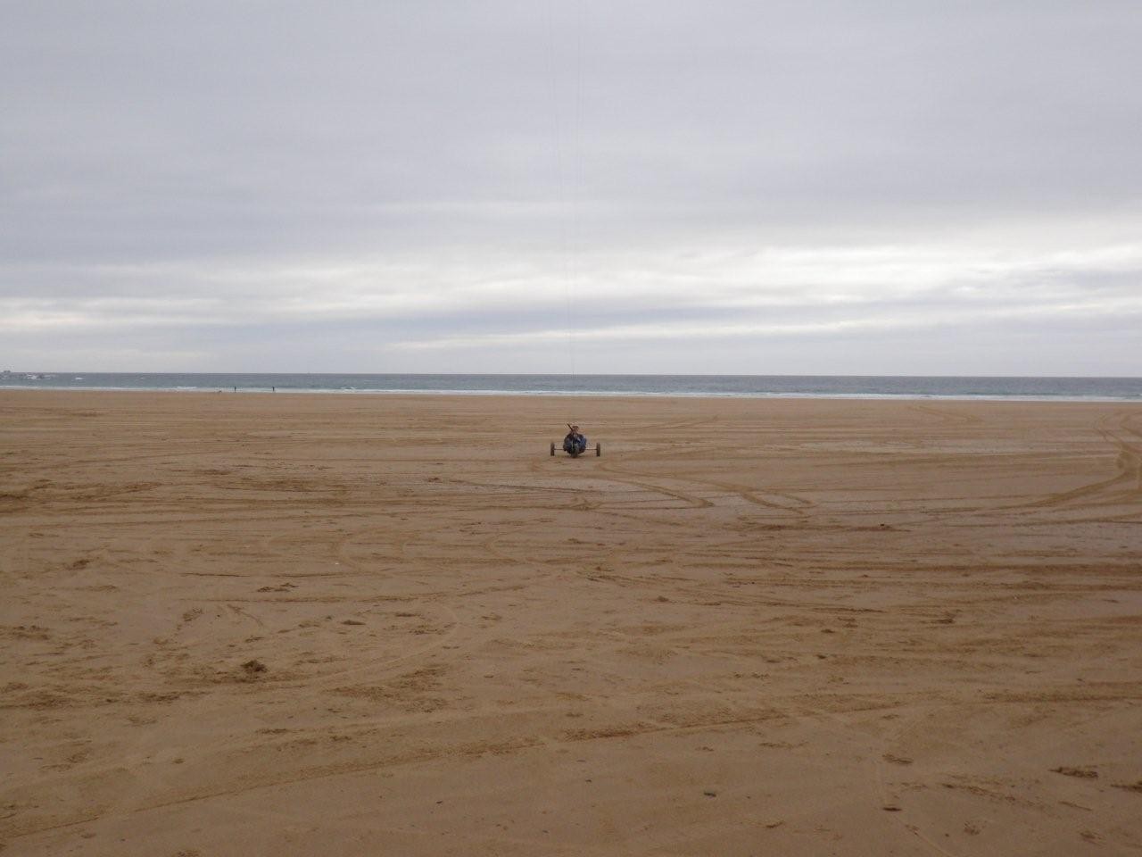 Le matin j’arrive un peu tard à cause des courses. plus trop de place, un vent bien sud, pas grave! on travaille ses empannages, on joue au 4×4 dans les montées de galet. ça secoue, ça saute, ça tappe sur le chassis, c’est assez trippant. Enfin j’ai cassé une plaque et perdu un piquet, c’est bête. Surpris d’avoir quand même 20km au compteur.