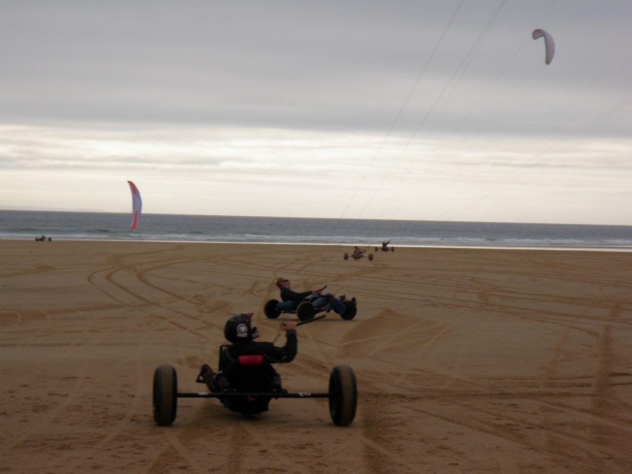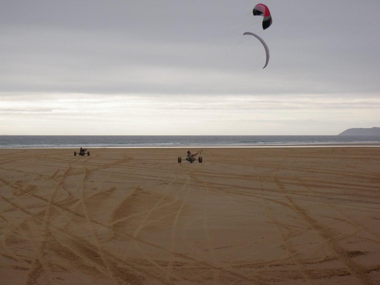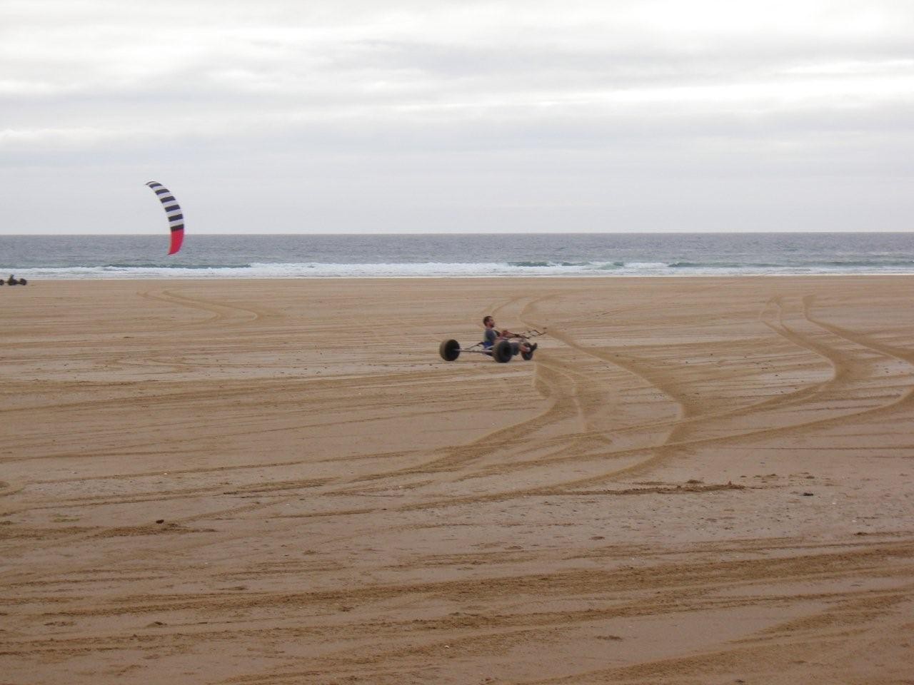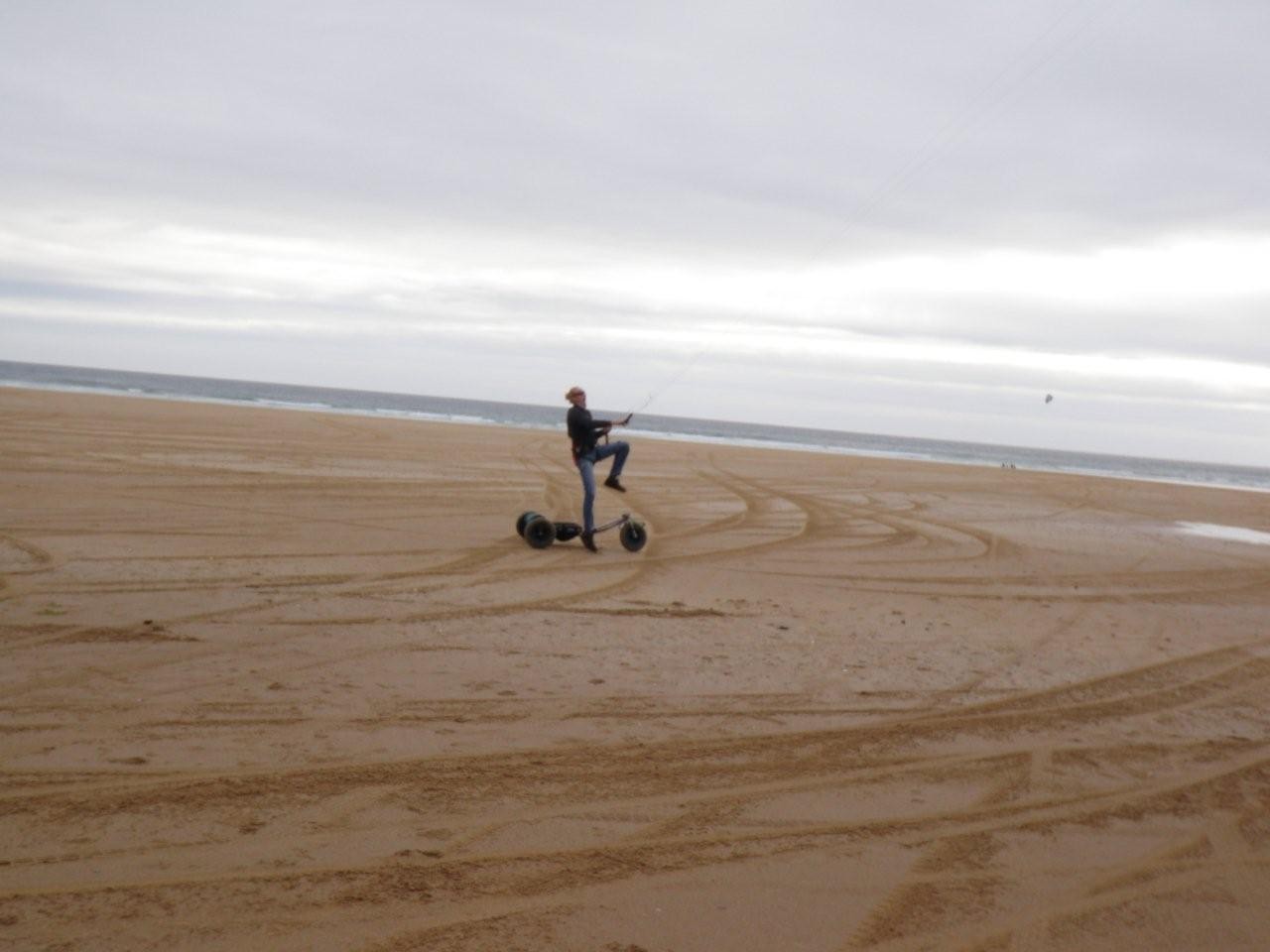 Le matin j’arrive un peu tard à cause des courses. plus trop de place, un vent bien sud, pas grave! on travaille ses empannages, on joue au 4×4 dans les montées de galet. ça secoue, ça saute, ça tappe sur le chassis, c’est assez trippant. Enfin j’ai cassé une plaque et perdu un piquet, c’est bête. Surpris d’avoir quand même 20km au compteur.