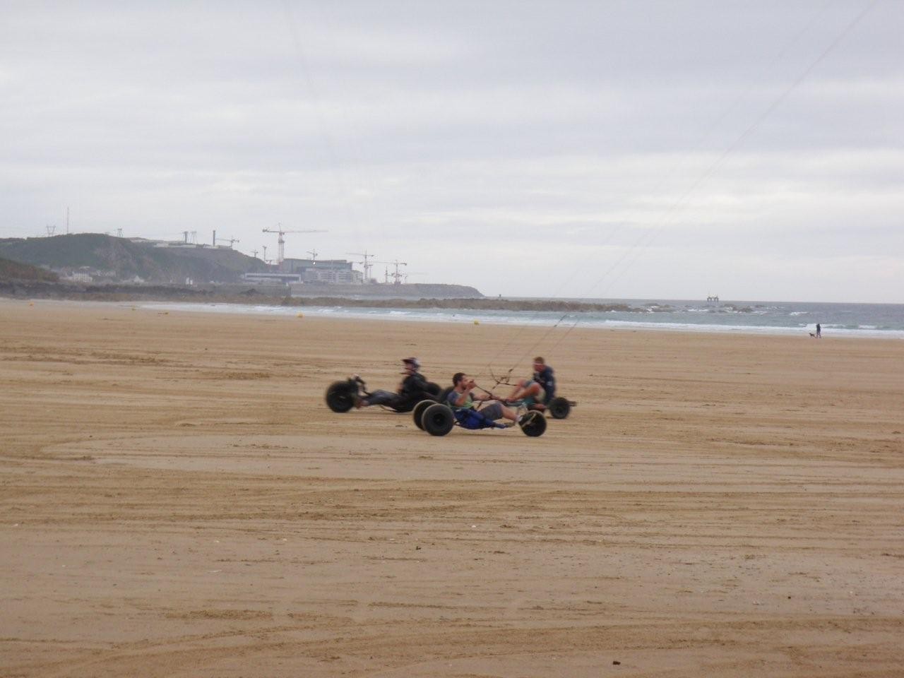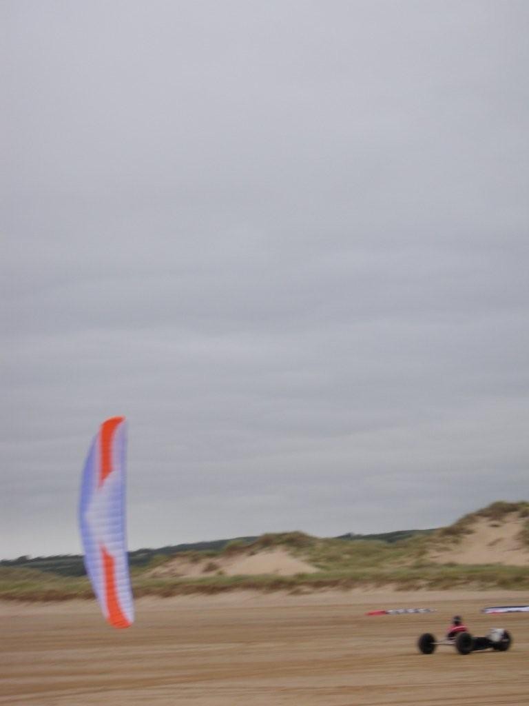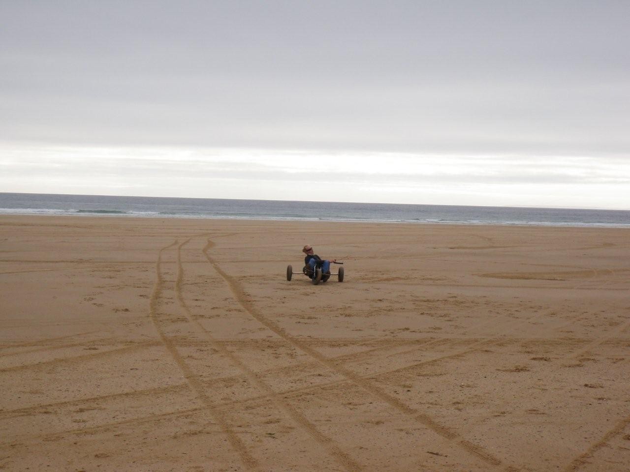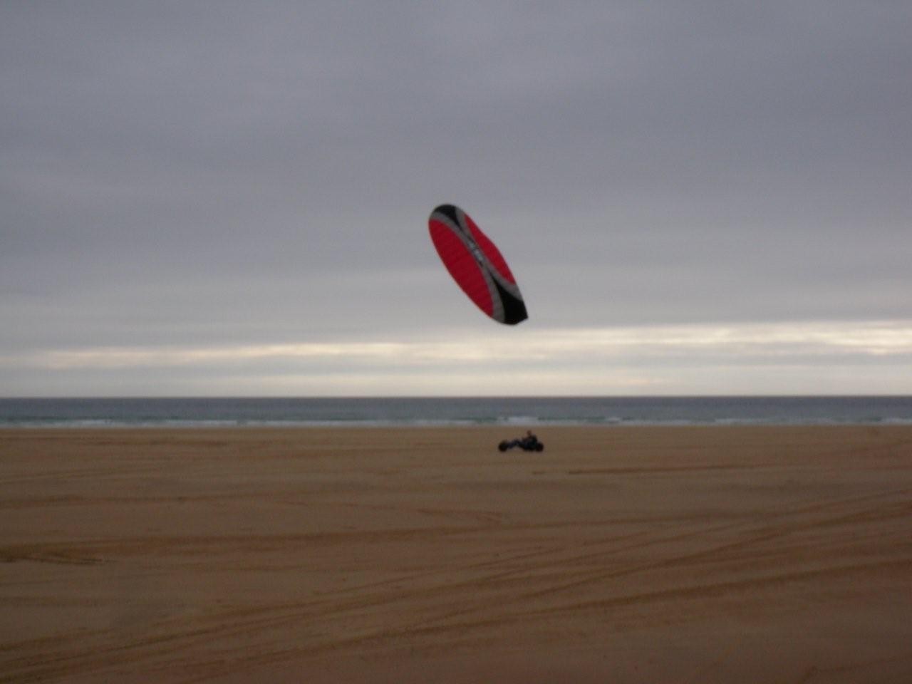 Le matin j’arrive un peu tard à cause des courses. plus trop de place, un vent bien sud, pas grave! on travaille ses empannages, on joue au 4×4 dans les montées de galet. ça secoue, ça saute, ça tappe sur le chassis, c’est assez trippant. Enfin j’ai cassé une plaque et perdu un piquet, c’est bête. Surpris d’avoir quand même 20km au compteur.