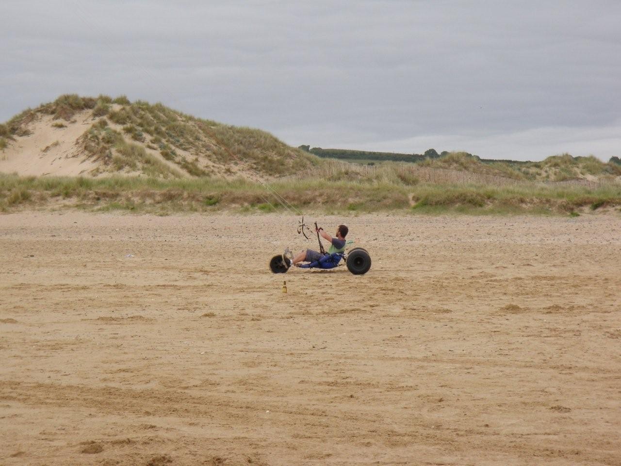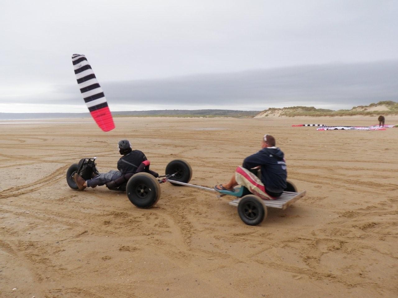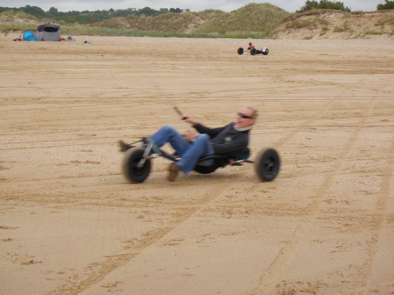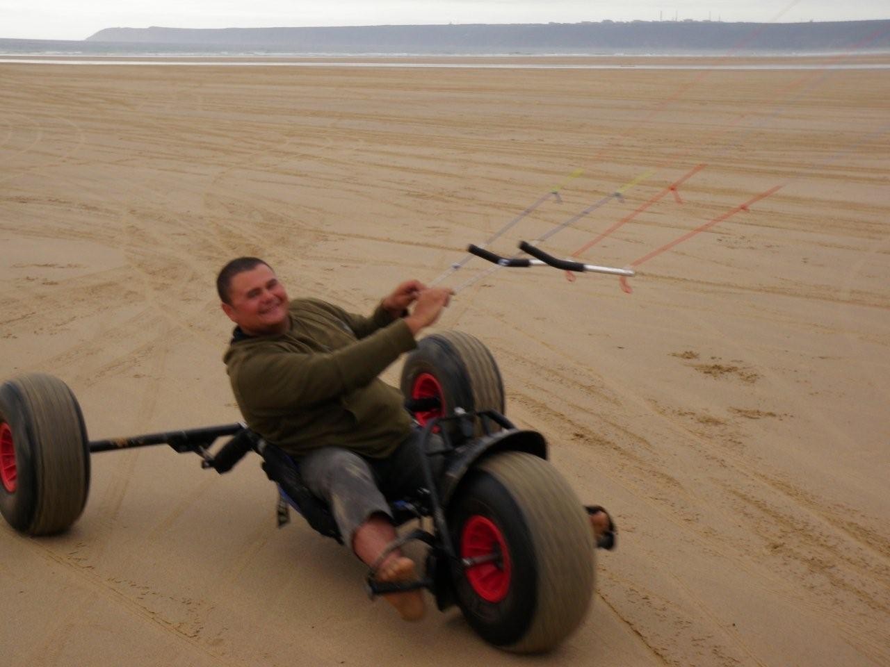 Le matin j’arrive un peu tard à cause des courses. plus trop de place, un vent bien sud, pas grave! on travaille ses empannages, on joue au 4×4 dans les montées de galet. ça secoue, ça saute, ça tappe sur le chassis, c’est assez trippant. Enfin j’ai cassé une plaque et perdu un piquet, c’est bête. Surpris d’avoir quand même 20km au compteur.