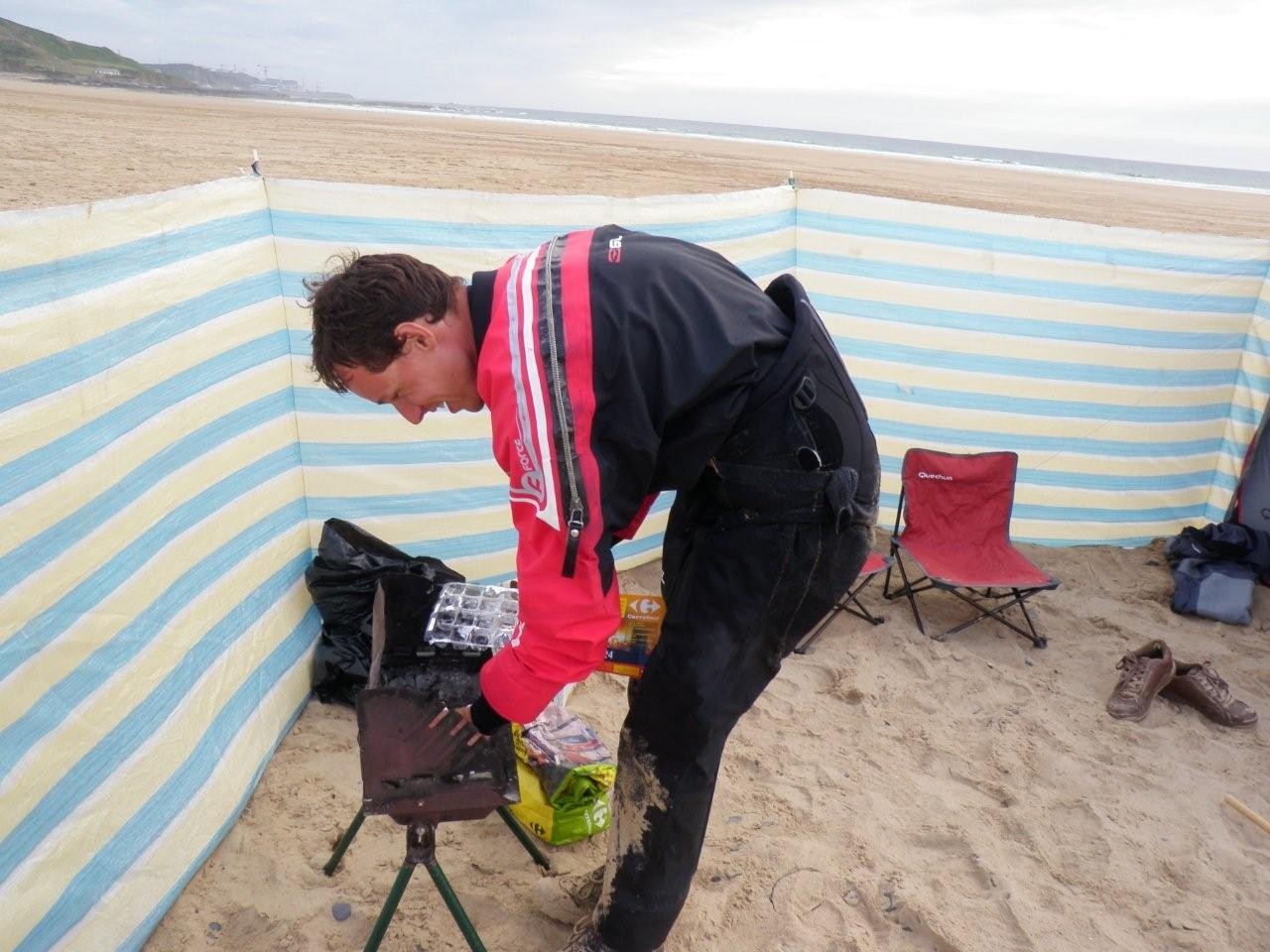 Après tout ces petits runs, certains ont commencé à avoir faim, remballage du matos, renforcement du camp grâce à Super kON!c et allumage du barbeuq avec Ben et Tomazi !