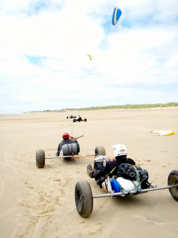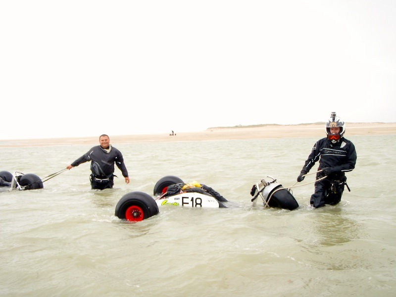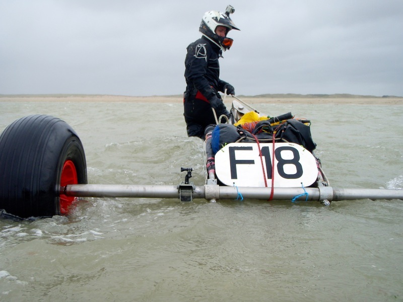 – un Tomazi en ouvreur de piste solitaire  avec la technique « j’vais voir », trop impatient d’avancer au point de se retrouver vautrer au milieu d’une rivière après avoir dévalé 2m de dune puis au havre de Régneville en se demandant « heu… ils sont où les copains? ». Retour à Agon : ah!! ils sont en train de manger! « Hey les gars pas le temps, on roule!!!! »