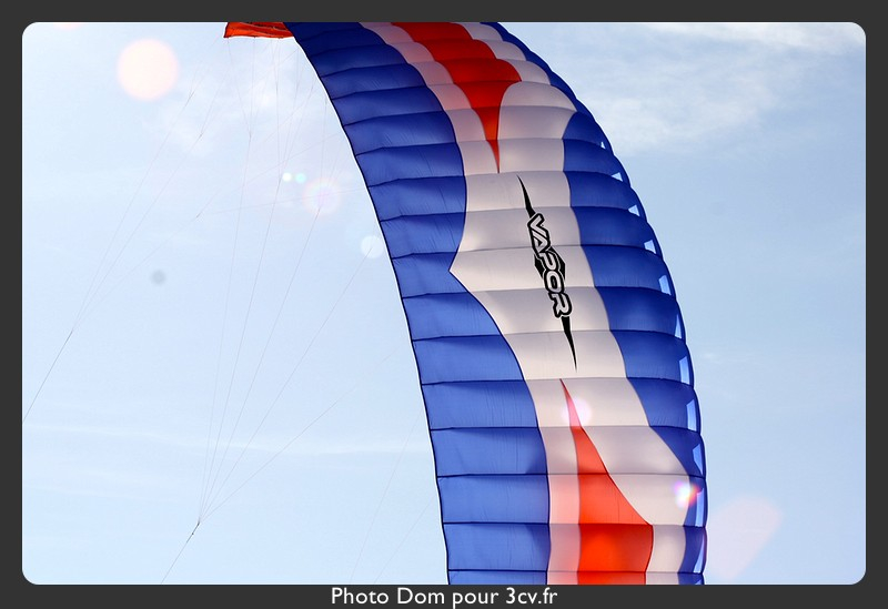 Plus particulièrement pour nous, déballage de tout notre bazar ! Avec 7-8 chars à cerf-volants, des drapeaux, des bannières, des coccinelles et autres vaches, crabes et puis des cerf-volants monofils en tout genre, une fois en l’air, un autre par terre :-(.