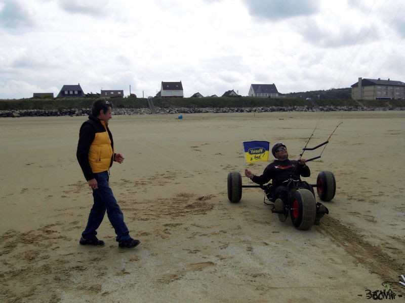 Débarquement à 9h au club pour changer les roulements, des bénévoles s’affairent déjà. Merci à Claude pour m’avoir aidé à sortir les morceaux restés, j’étais dans une belle galère. Puis c’est Rémi qui me prête sa tente, des poignées et m’aide à tout installer. Ouai je suis venu un peu à l’arrache… En plus, quand j’arrive sur la plage, tout le monde est installé, plus de place ! Obligé d’aller au fond en hors zone, là où les chars à voiles font des baptêmes. Le club avait organisé cette activité, attirant encore plus de public, c’est une bonne idée, cela fait du monde sur la plage et plein d’engins et de cerfs-volants qui se côtoient.