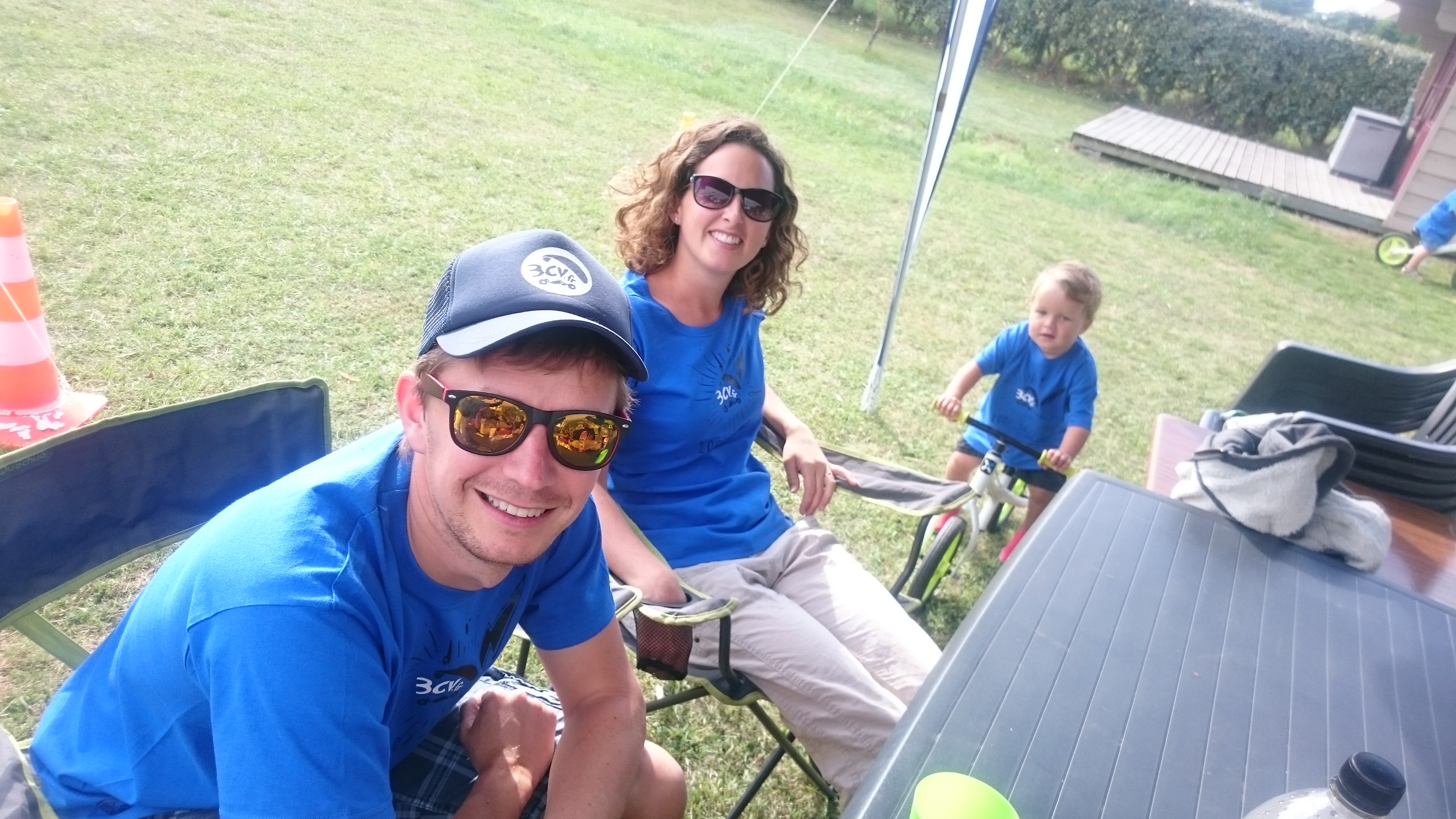 Le Directeur de course nous présente le parcours, c’est super bien foutu il a des minis drapeaux, y a même la mini caravane des secouristes (juste génial)