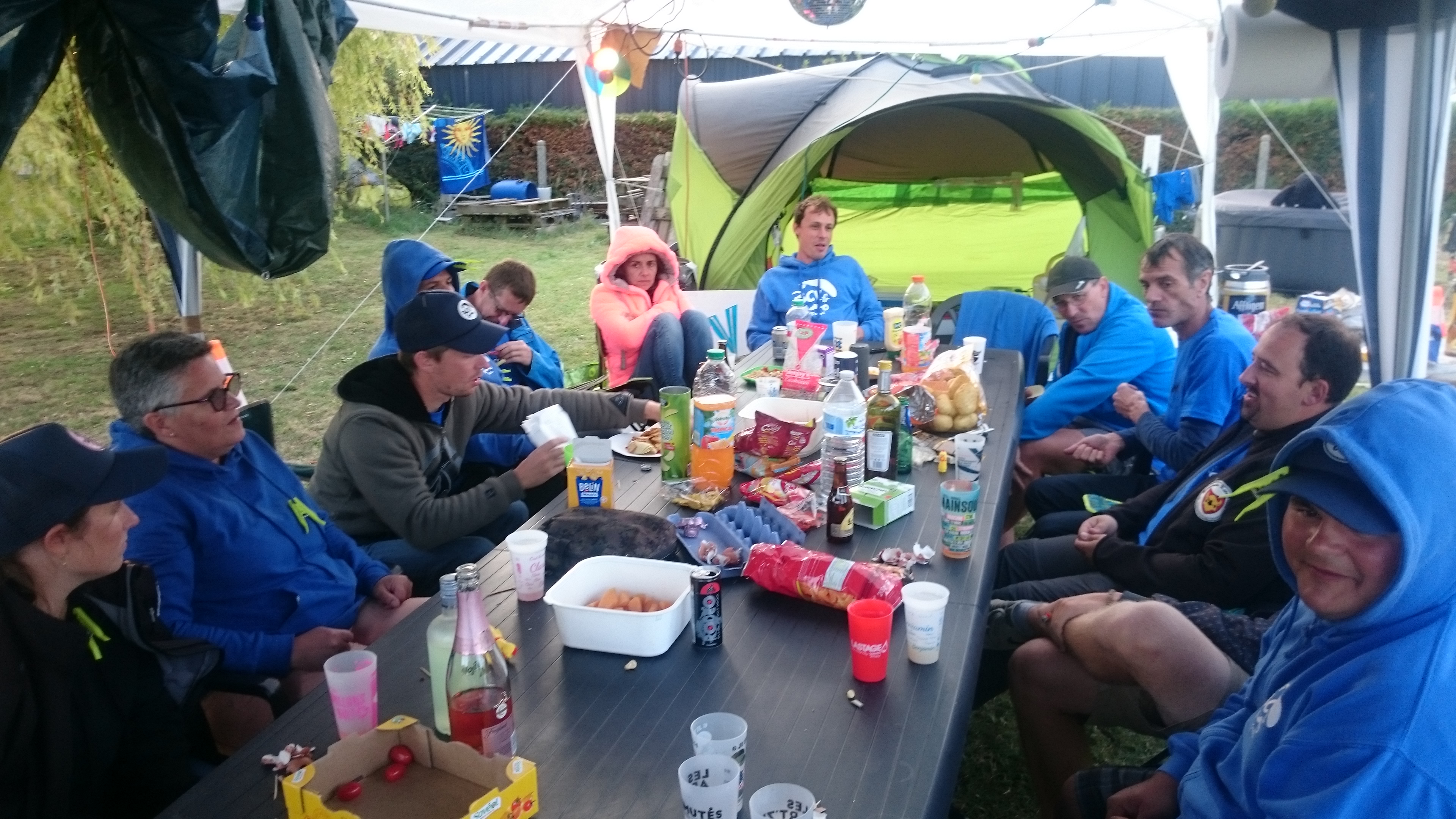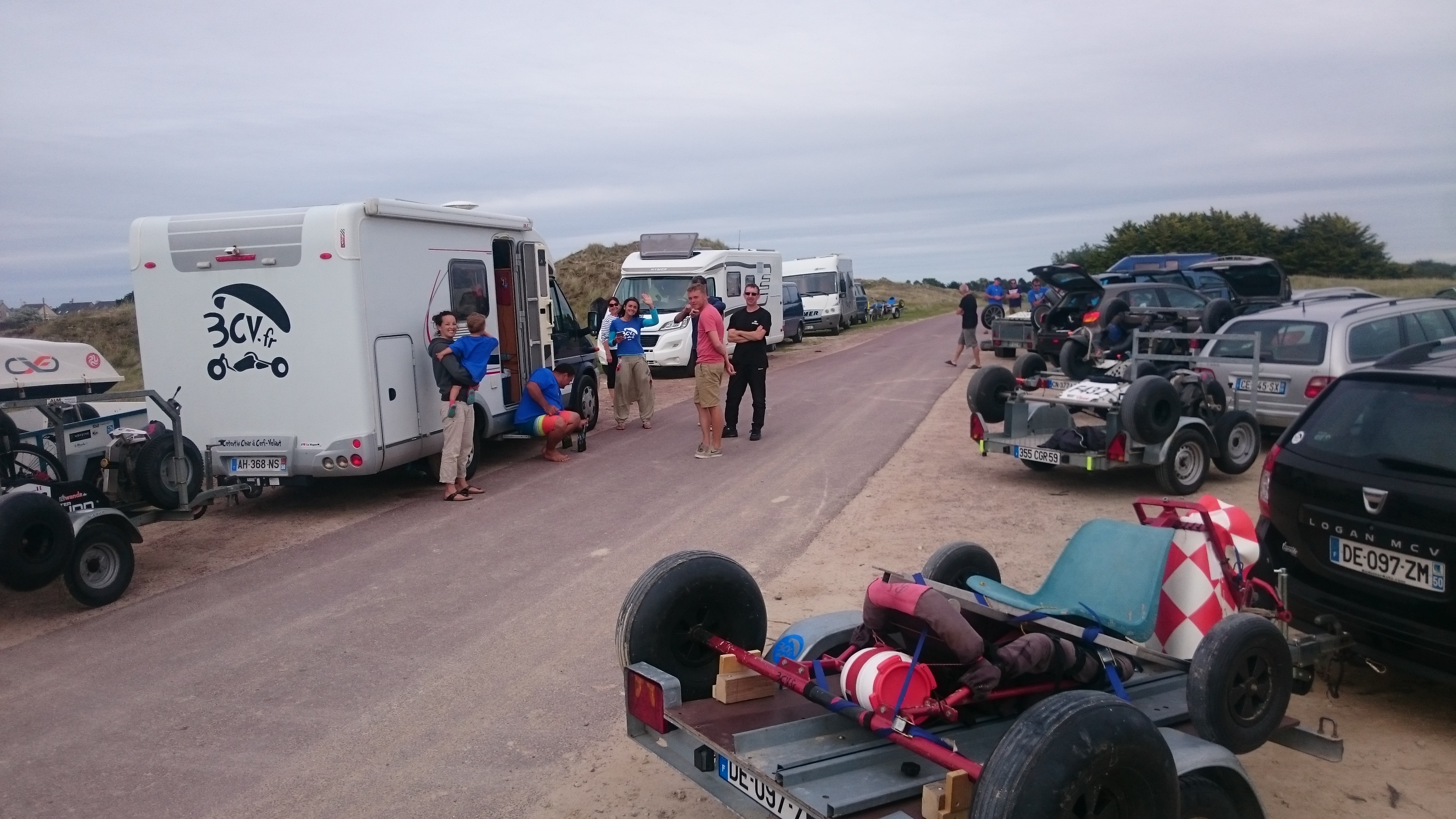 1er jour de compétition, on arrive sur la plage sous des trombes d’eau, on nous demande d’attendre, car les prévisions annoncent que ça va se dégager, et en effet à 14H grand Soleil, on vas pouvoir lancer.