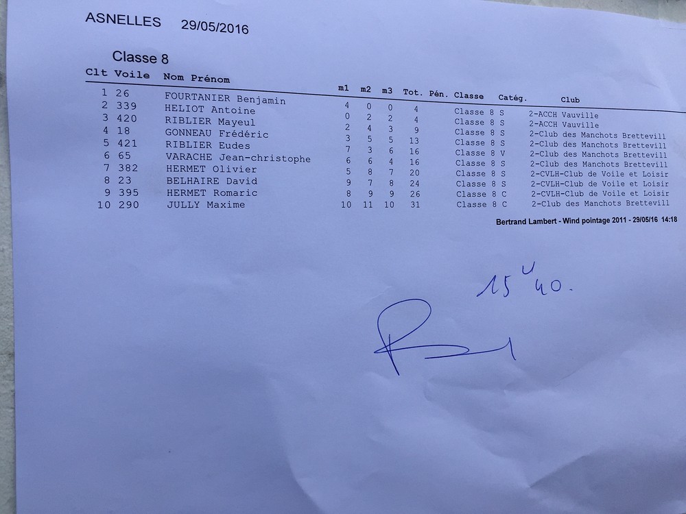 Apres le déjeuné Henri (notre directeur de course) nous lance pour une 3eme manche le vent à baissé je fini 26eme.