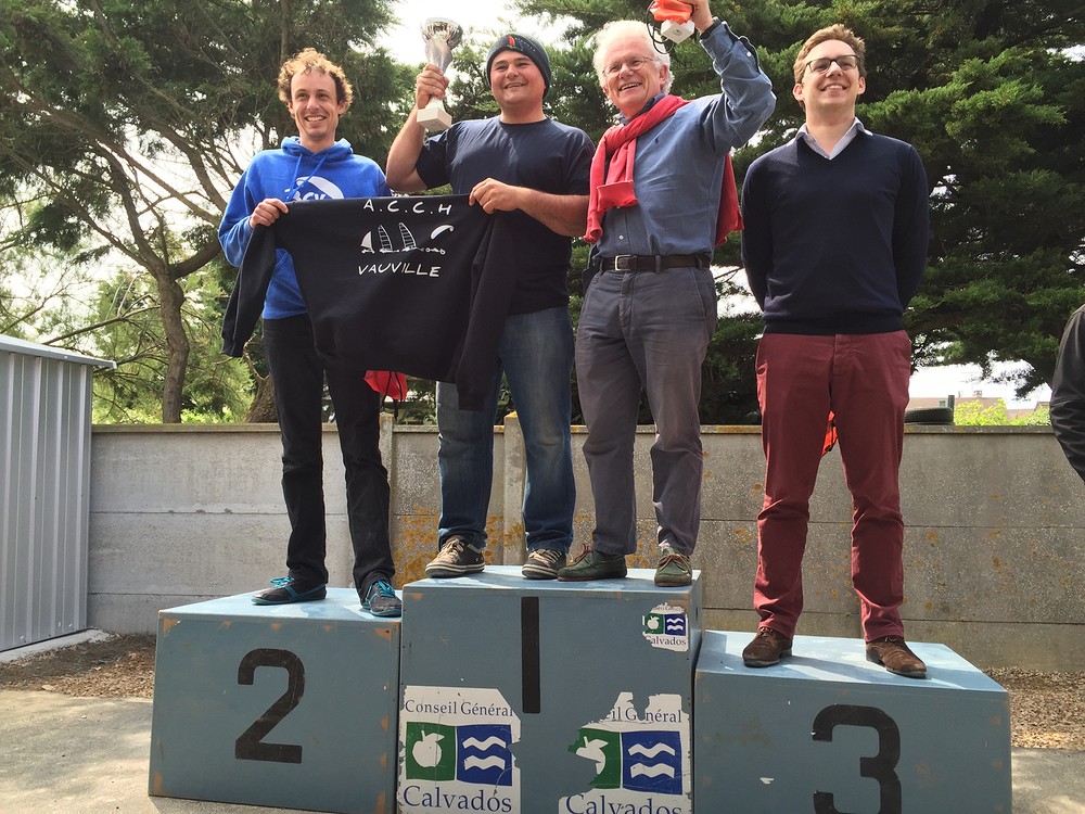 Dimanche dernier avait lieu la finale de la ligue de Normandie à Asnelles (14). Un vent de Nord entre 12 et 15 Noeud nous a permis de courir 3 manches, et de faire non seulement un podium de l’étape 100% 3cv, mais également un podium 100% 3cv pour la saison.