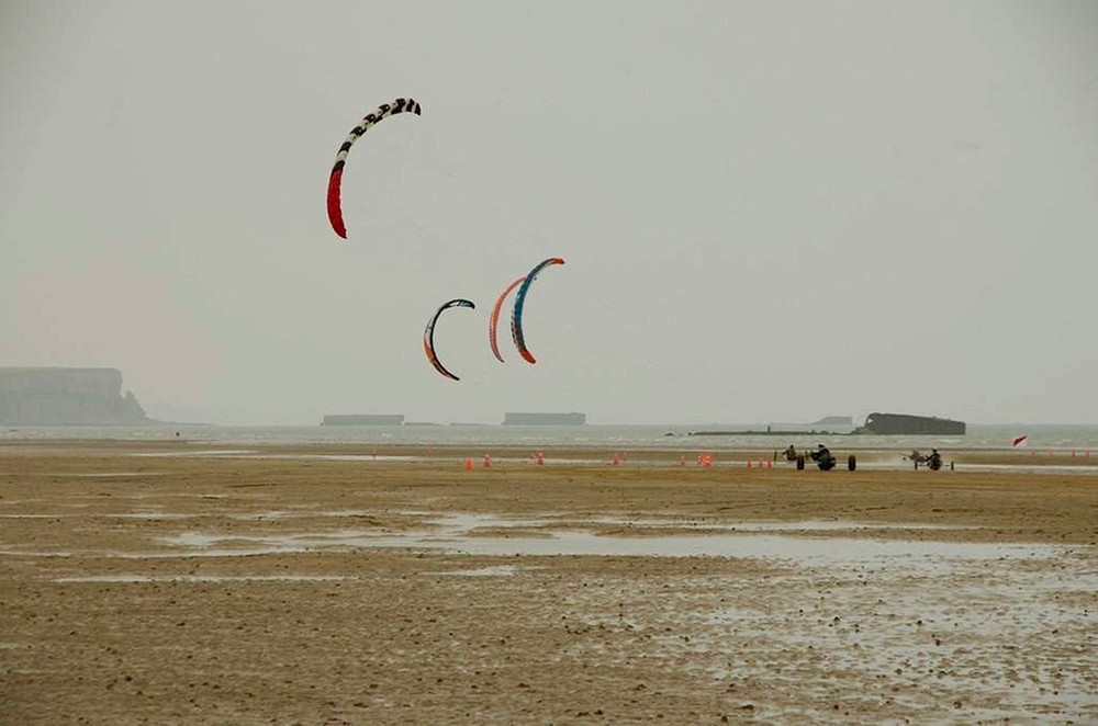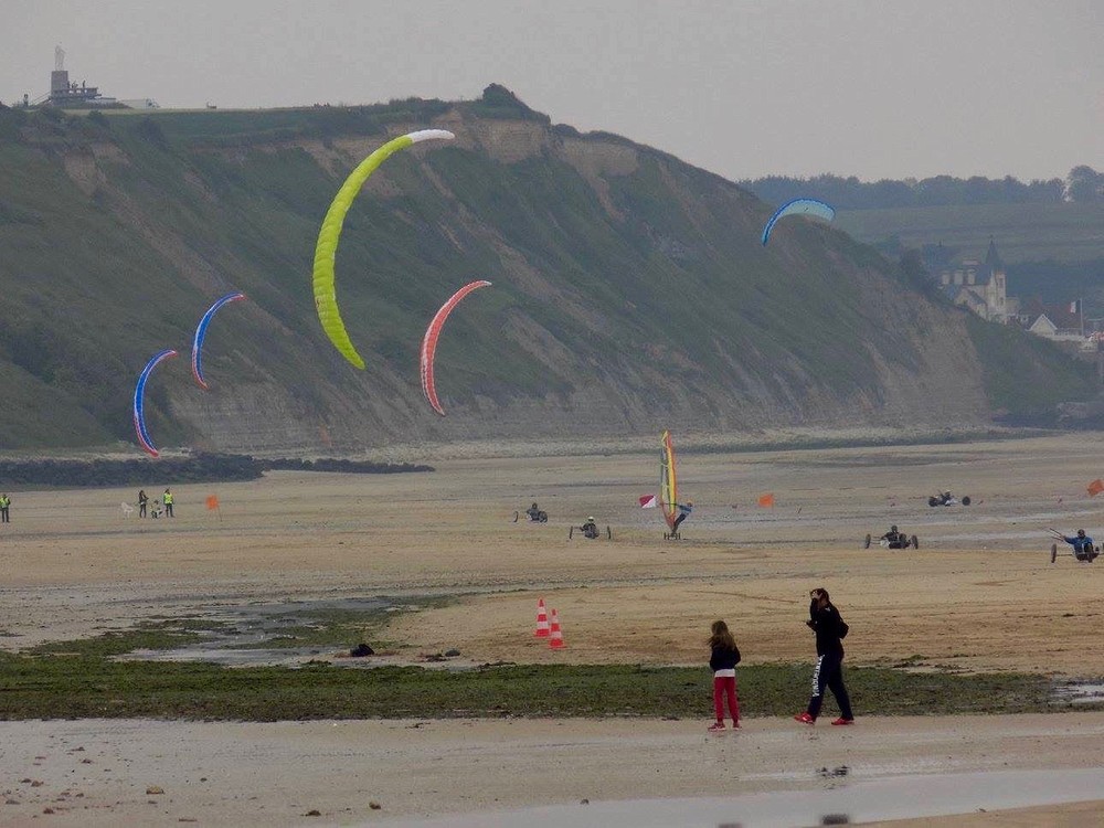 10 pilotes sont là et se préparent pour un départ un peu avant 10h. Lors du tour d’essai, j’ai pris la 6.5, je manque de patate, le vent est relativement faible et la plage colle. En dernière seconde, je décide de prendre la 7.8. Top départ au milieu des Riblier et je constate que je suis le plus toilé, le résultat ne se fait pas attendre, j’accélère tranquille. Ben sous-toilé ne pourra rien faire. La manche se passe sans broncher, je suis content d’arracher une des rares victoires.