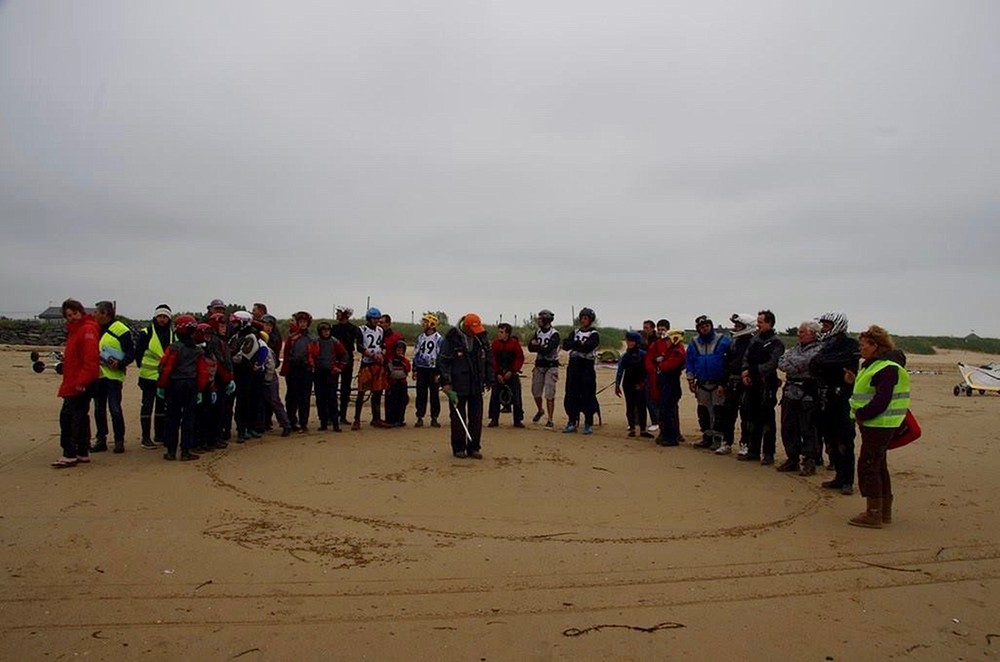 Samedi matin il pleut mais le vent est plutôt soutenu, la plage est superbe bien que mouiller. au premier Briefing Jean mimi nous lis un mail de la fédération qui nous propose de transformer ce non CDF non pas en conviviale mais en GP. nous votons, mais la majorité préfère rester sur un format convivial.