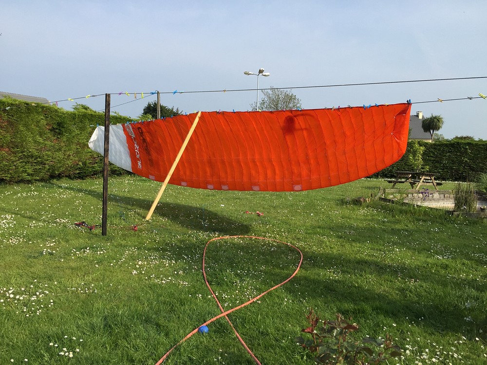 Retour à  la maison pas trop tard, j’ai le temps de rincer la 12, le petit vent et le soleil que l’on a dans la hague sèche la voile quasi instantanément.