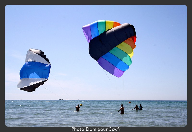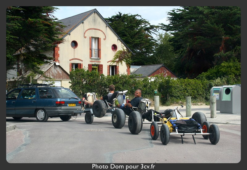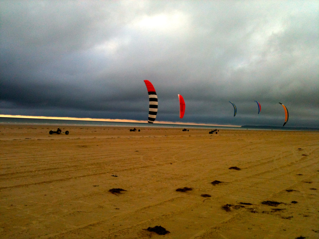 Plus particulièrement pour nous, déballage de tout notre bazar ! Avec 7-8 chars à cerf-volants, des drapeaux, des bannières, des coccinelles et autres vaches, crabes et puis des cerf-volants monofils en tout genre, une fois en l’air, un autre par terre :-(.
