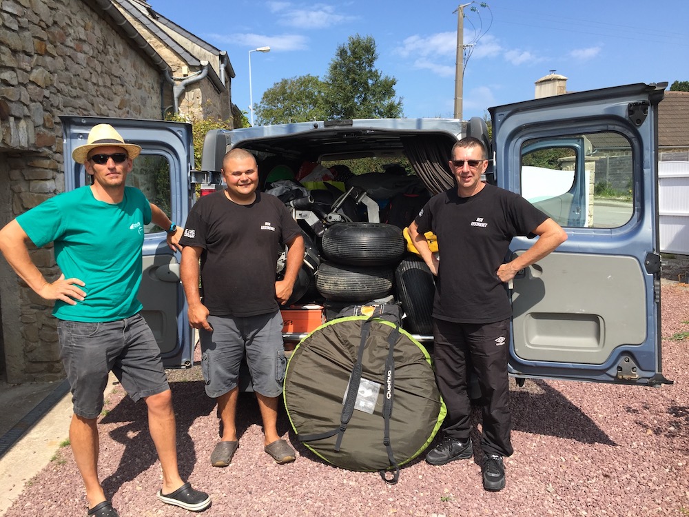 au départ de Biville avec Croougy et Jean Marie Cuzon, on charge les 3 buggys dans le trafic, ainsi que tous le matos.