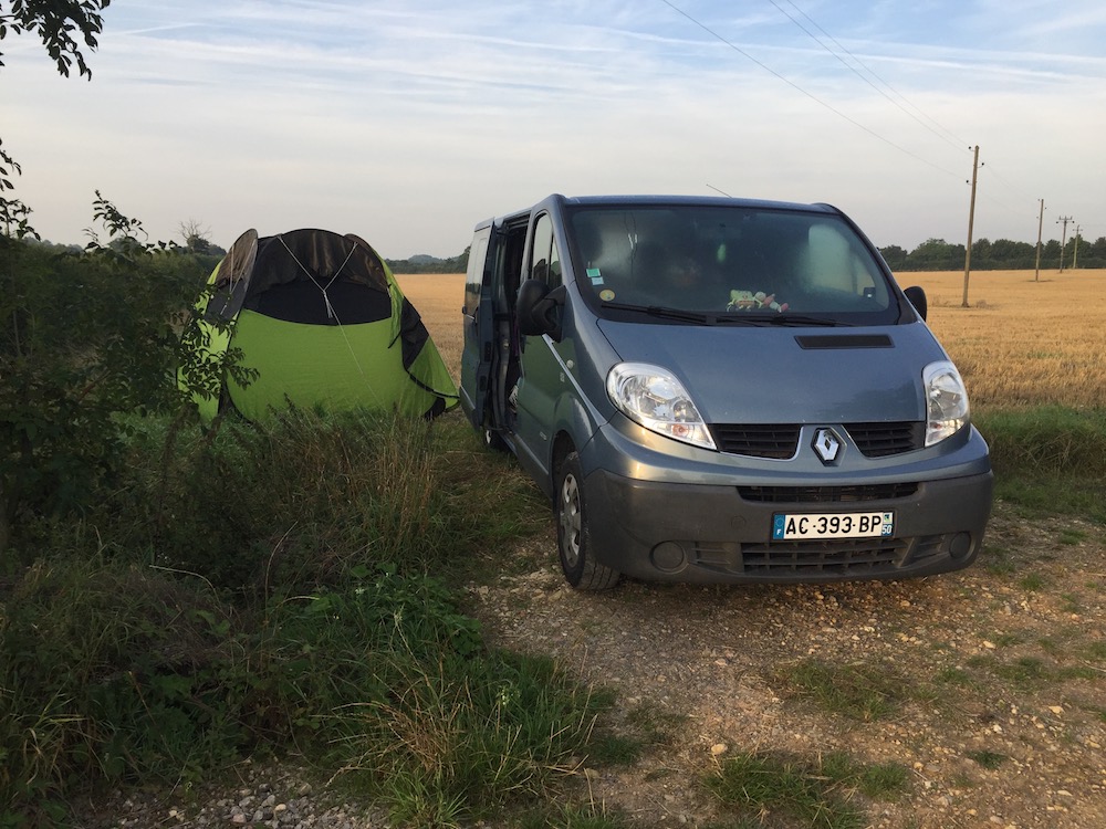 Le temps de passer la douane, on prend la route vers 23H, Hoylake est a environ 5H de route. Vers 1H du matin la fatigue commence à ce faire sentir, on se trouve un champ de blé moissonné pour passer la nuit dans la tente base