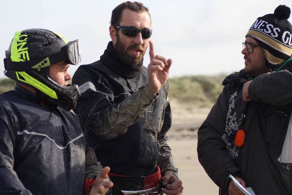 Notre directeur de course (Thibaut) et notre Jury (Guillaume) repousse le briefing de 30 min ce qui nous permet d’attendre que le vent s’établisse et de tester la plage.