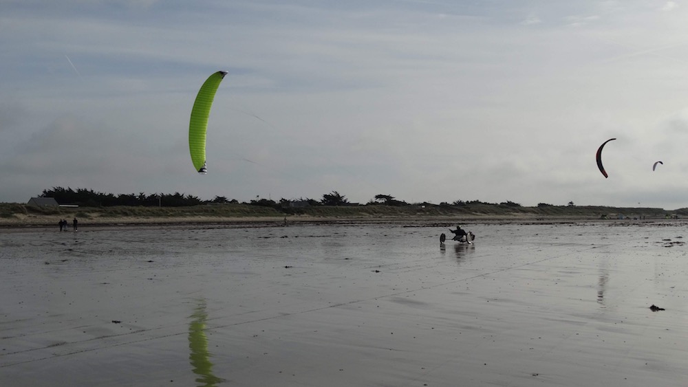 quand les copain du club des Islandais (Nord) arrivent ils me sorte du piège, et on part rouler pour tester la plage. Le vent est de terre et très très light. Je prend donc mon Aéro 17m2. On roule environ 1H et le vent tombe d’un coup. un petit coucou de tonno et Emilien