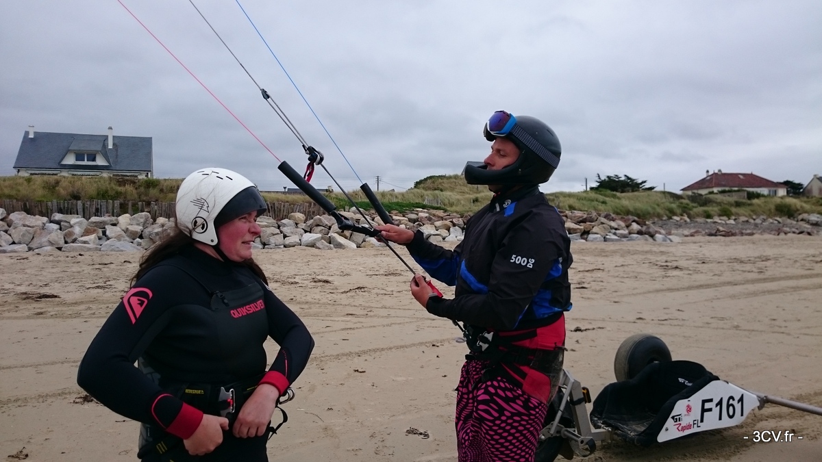 Parlons du vent. Ah le vent de terre d’Hermanville, je crois qu’il a laissé des souvenir indélébiles à chaque pilotes qui a roulé ici au moins une fois dans sa vie. Le choix de voile (je parle évidemment caisson ouvert) est toujours délicat.