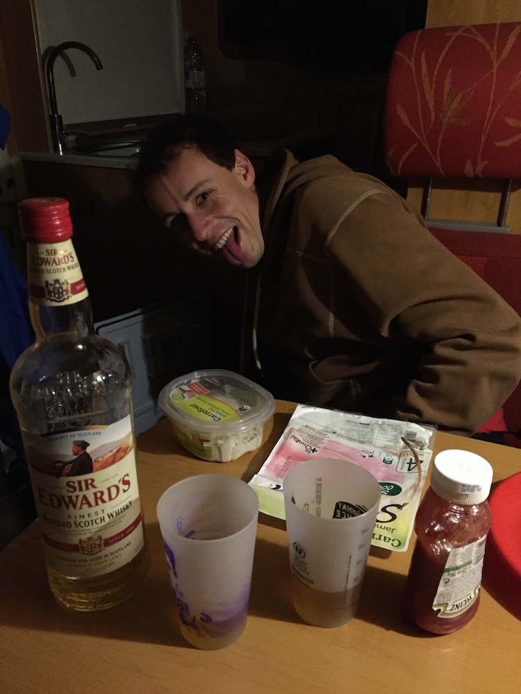 Après un 1er apéro à Rouen à dose légale pour conduire, je file rejoindre le père Ben sur notre parking préféré de soirée. Je me fais presque virer du camping car vers 1h30 par mon hôte qui sent le traquenard alors je file au dodo dans le break.