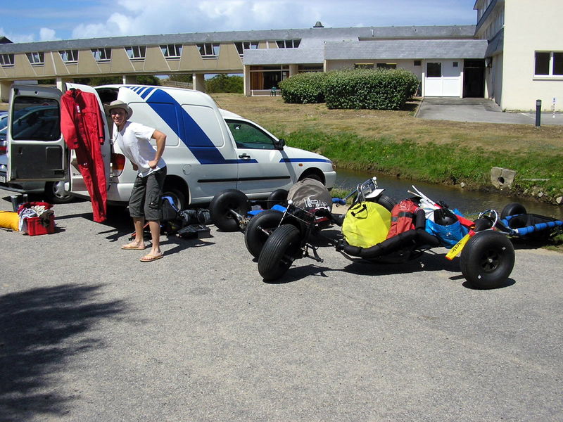 Donc voila une « session grosse » ! Grosse pour le temps et le déballage mis en œuvre, mais pas grosse pour le temps de roulage. 14h – 19h et seulement 30km et max 43 km:h pour moi ; mais par contre, tout le matos de sortie : 2 tenteS, 4 sièges, 4 chars, 7 ailes (!!!), 3 jeux de lignes, le jeux de boules.