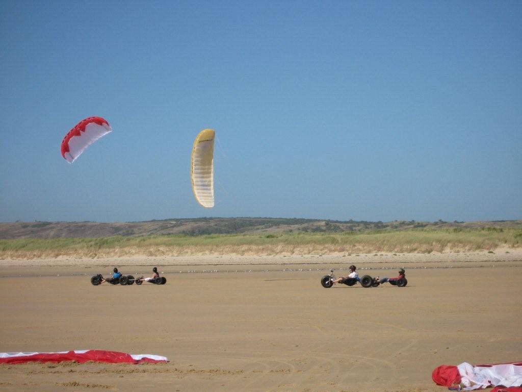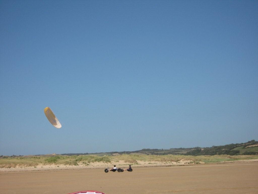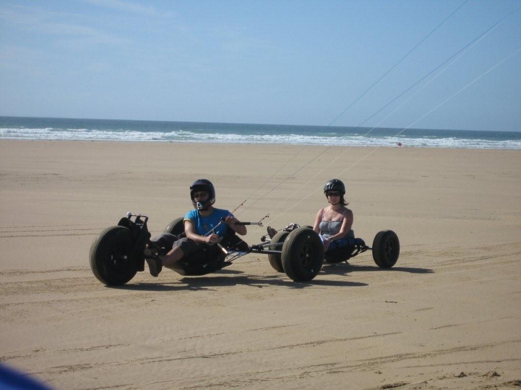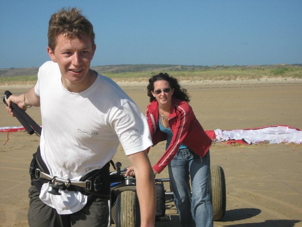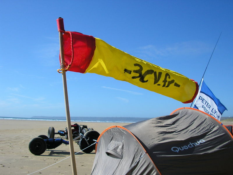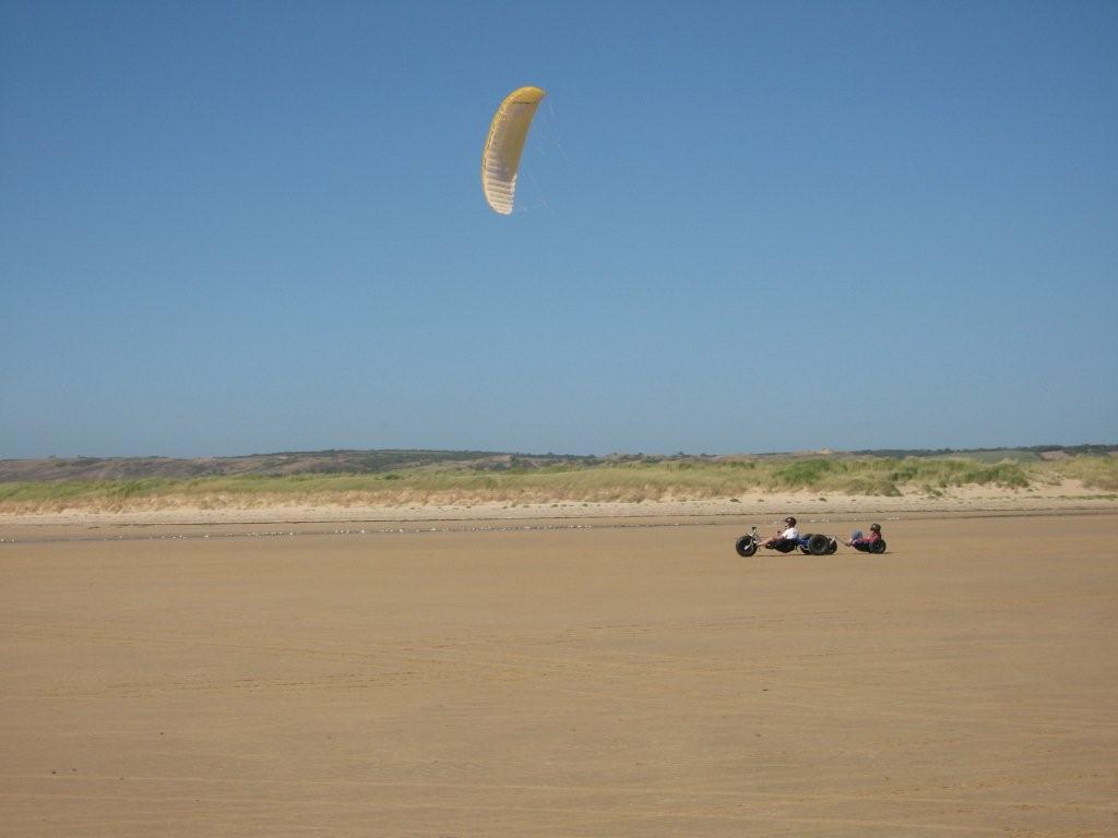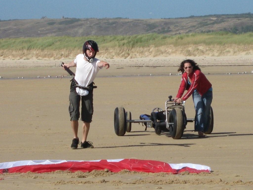 Yes, en effet une plage pas terrible mais une superbe après midi quand même 😀 Arrivé vers 14h, le temps de monter char et le campement, début de roulage aux alentours de 15h. L’orientation du vent et la plage très défoncée nous contraint à faire un parcours amélioré, du style » a la Ben « . Baptême pour les parents à Camille, pour eux, c’est une excellente première approche, on risque de les revoir 😉