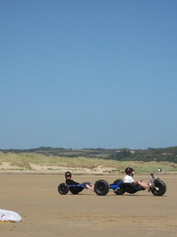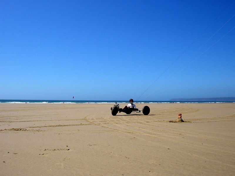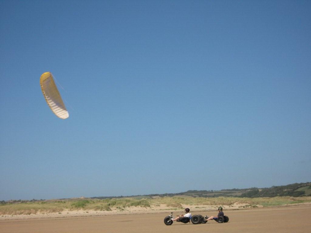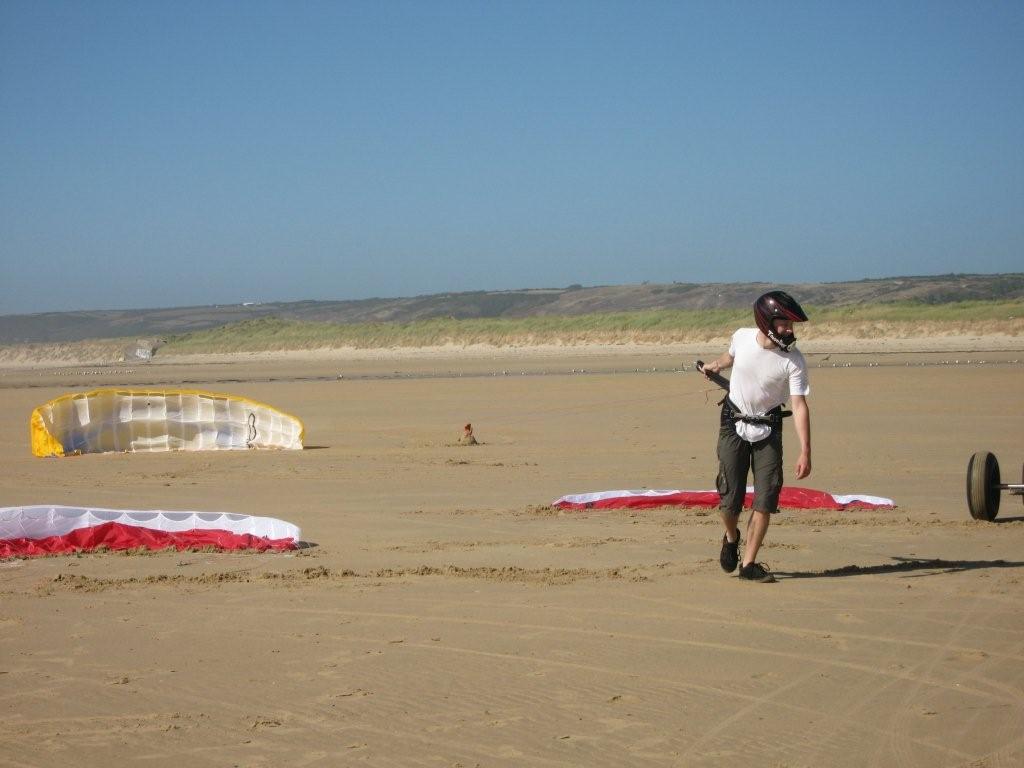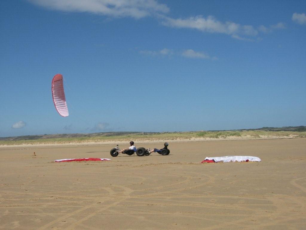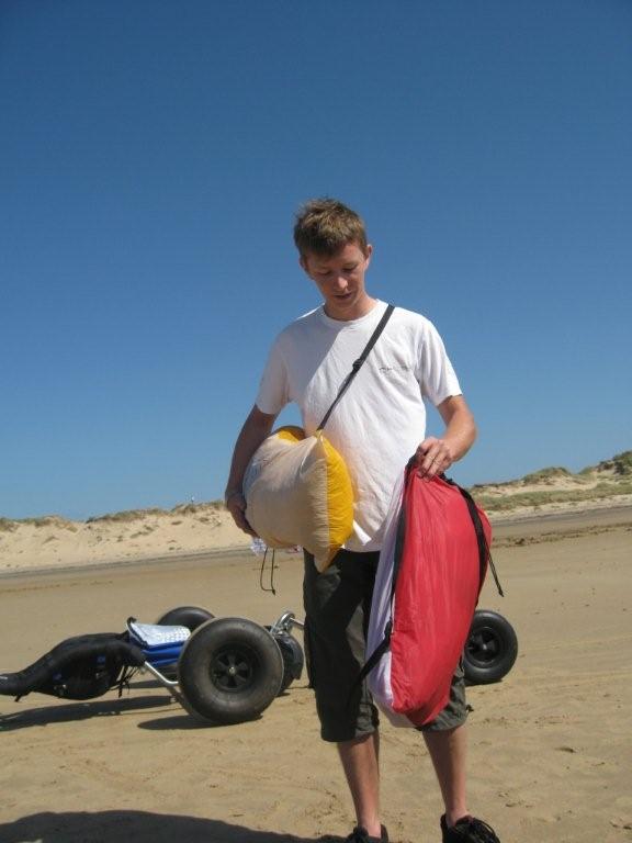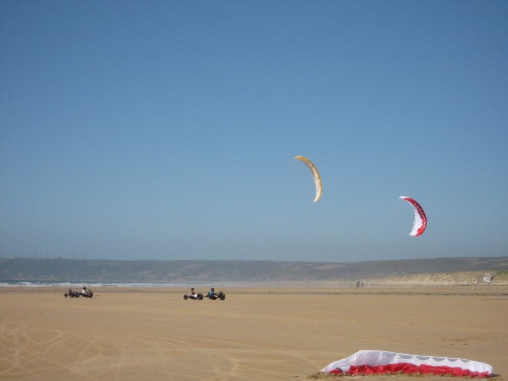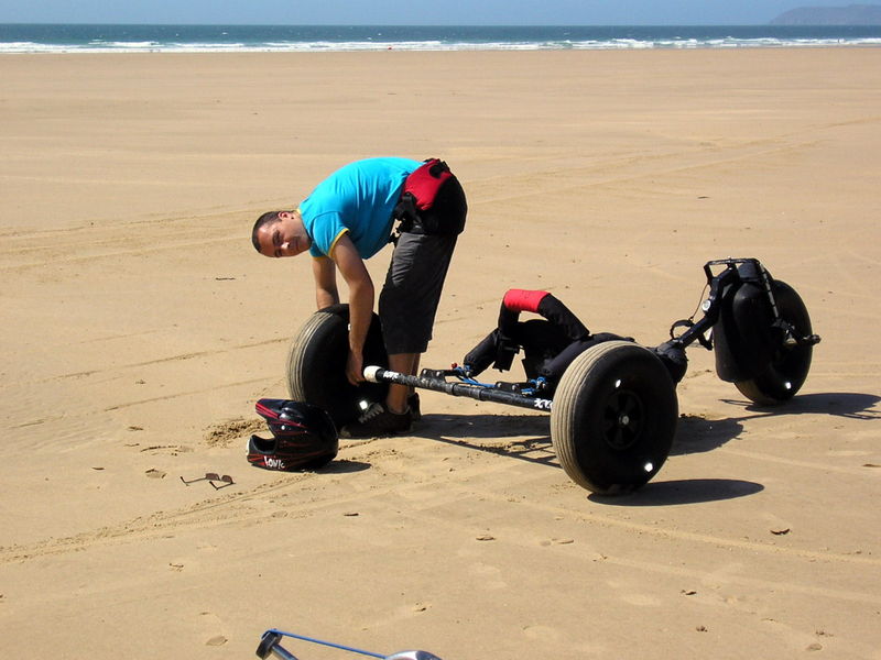 Yes, en effet une plage pas terrible mais une superbe après midi quand même 😀 Arrivé vers 14h, le temps de monter char et le campement, début de roulage aux alentours de 15h. L’orientation du vent et la plage très défoncée nous contraint à faire un parcours amélioré, du style » a la Ben « . Baptême pour les parents à Camille, pour eux, c’est une excellente première approche, on risque de les revoir 😉
