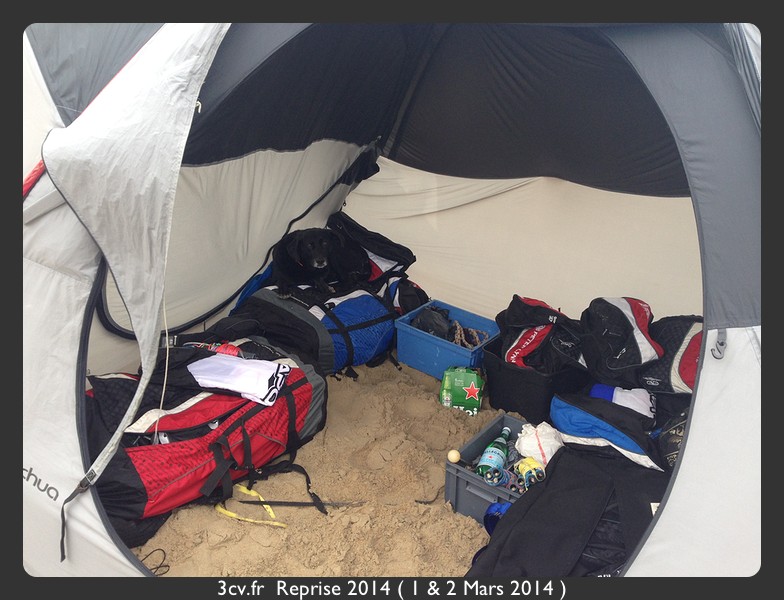 Nous partons rouler mais la plage est détrempée, nous sommes obligés de tirer des bords mais c’est a 100% aquaplaning.